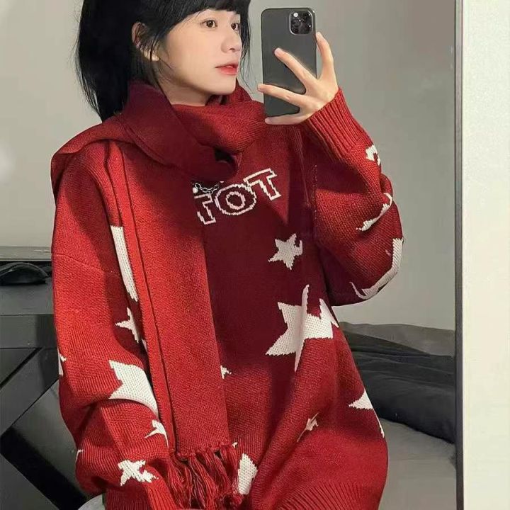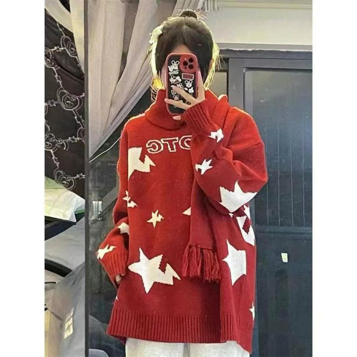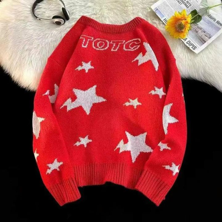 电商在售秋冬新款韩版新年红星星提花毛衣学院风针织衫...