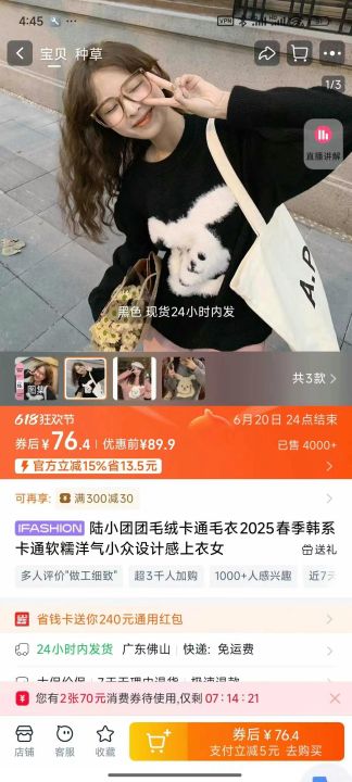 淘宝在售陆小团团毛绒卡通毛衣春季韩系卡通软糯洋气小众设计感针织衫,质感一绝,独立包装,均码80-130斤,415件,全清12.8分货➕1