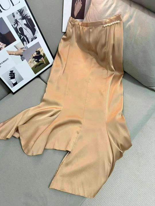 日本品牌代购法式缎面高腰不规则半身长裙气质优雅珍珠鱼尾裙,面料细腻顺滑,高品质无瑕疵,单款三色,0~1码,齐色齐码230件有清单,原单无包装,超值秒杀价12.8清