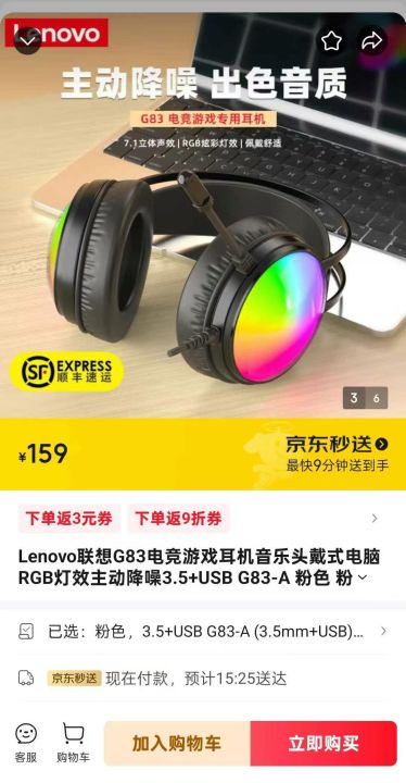 Lenovo联想G83A头戴式电竞游戏耳机39个,7.1声道,独立盒装,12.8元捡漏秒杀