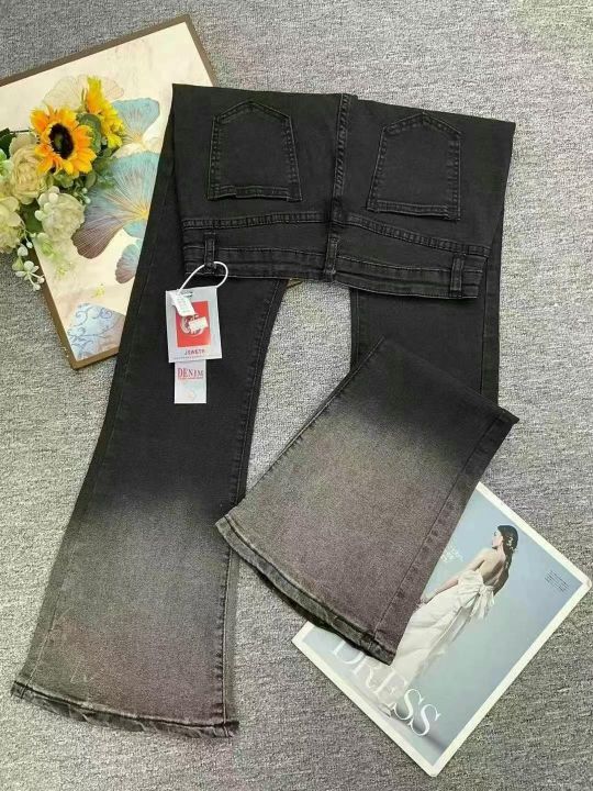 春夏新款洗水棉渐变色高弹力洗水棉牛仔微喇叭裤,独立包装带吊牌,码数S- 4XL码,150件左右,全清7.8元超低价秒杀!