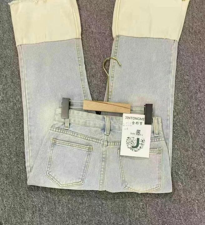 270件左右浅蓝色牛仔裤女2025夏季新款烟管裤拼接高腰显瘦直筒裤子,独立包装,码数S~XL,单款单色,全清8.8元。