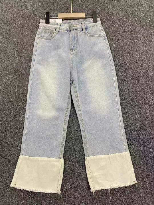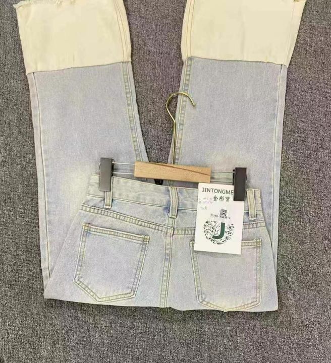270件左右浅蓝色牛仔裤女2025夏季新款烟管裤拼接高腰显瘦直筒裤子,独立包装,码数S~XL,单款单色,全清8.8元。