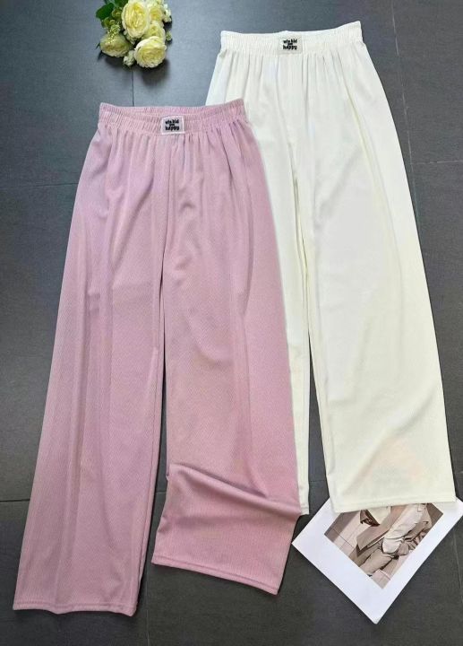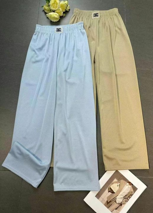 6.9元清新款冰丝阔腿裤,两个整款总共300条左右,一个款腰部有抽绳,一个款...