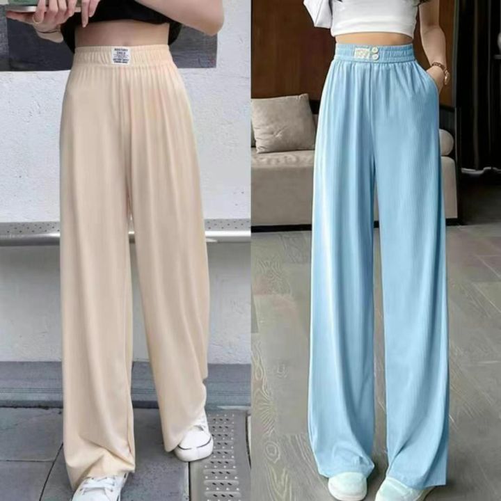 下身长裤[太阳]全清9.9,260件、均码。 夏季新款女锦纶冰丝速干阔腿裤休闲小标腰高腰长裤显瘦垂感十足,面料柔软舒适,有弹力,高品质可进实体店,这个性价比直接拉满✅独立包装,100/200件起多款混配10.9