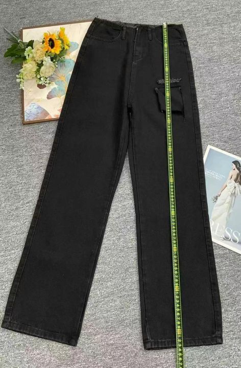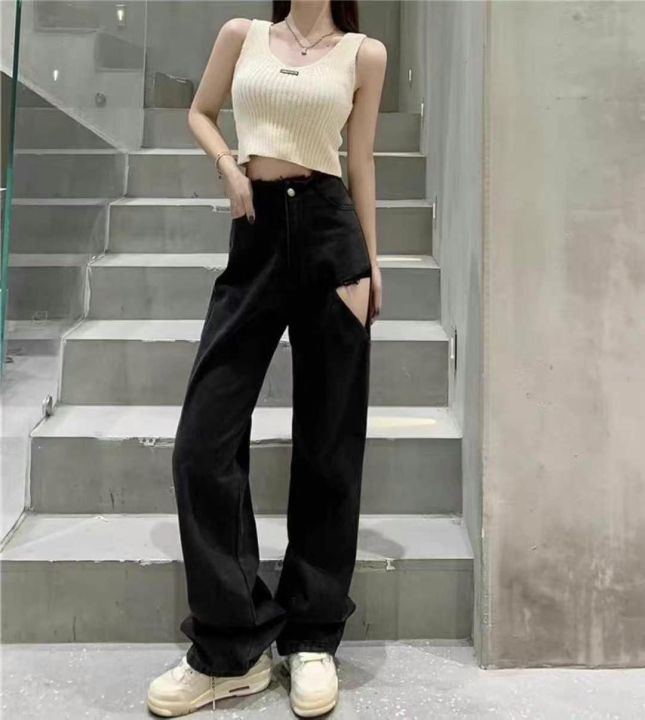 春季新款洗水棉破洞牛仔直筒阔腿裤,独立包装带吊牌,...