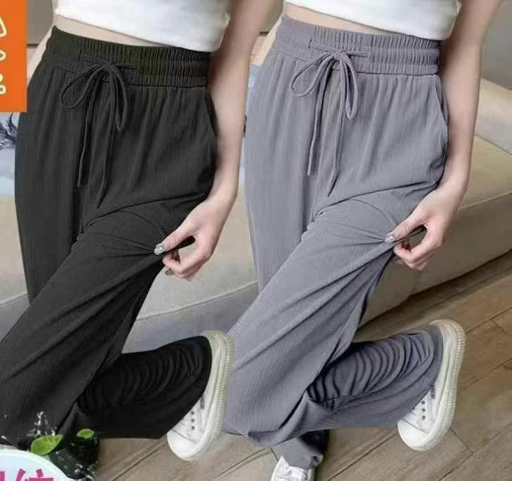 2025夏轻薄冰丝凉凉阔腿裤宽松休闲直筒裤女显瘦垂感高腰的,独立包装,码数s到XL,黑灰两个颜色,共1250条左右,全清7.9,分货+1
