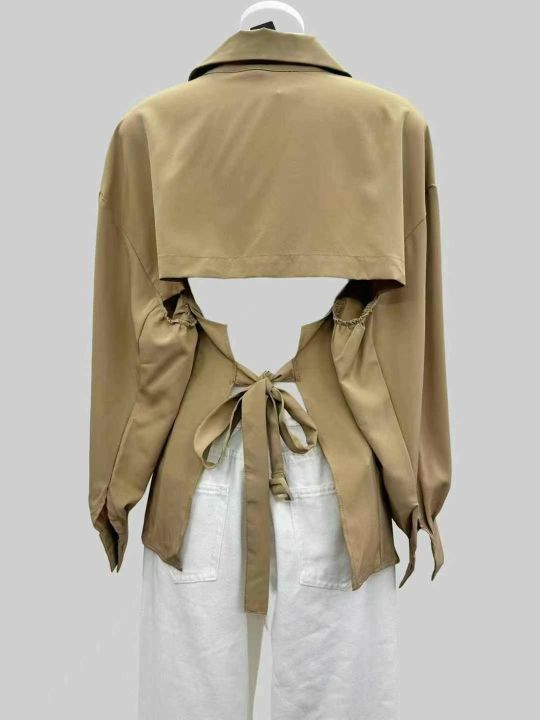 86件小众设计感气质衬衫上衣,后背露背、绑带设计,面...