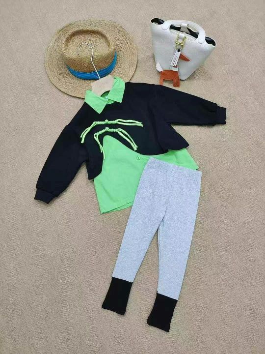 [月亮]:潮童国风假两件衬衣裤子套装