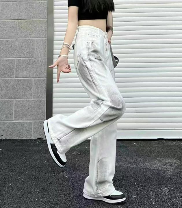 春夏新款复古泼墨设计感高腰水洗扎染阔腿牛仔裤,独立...