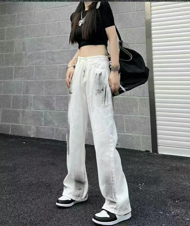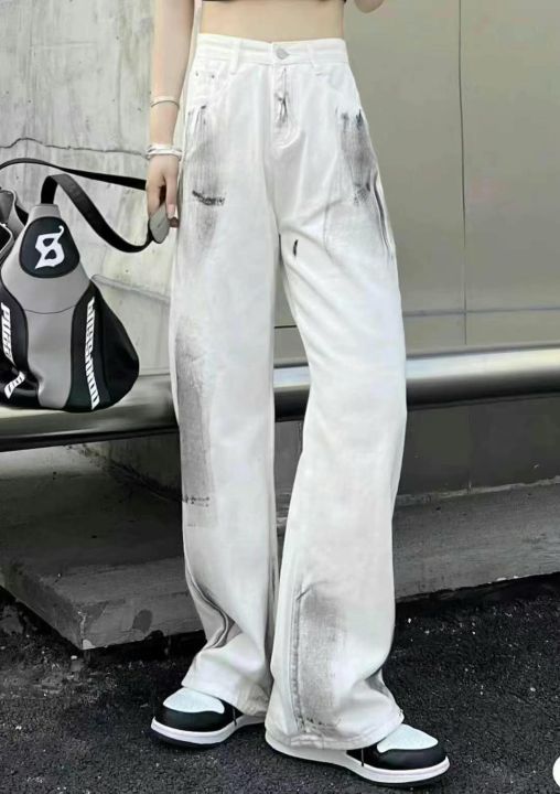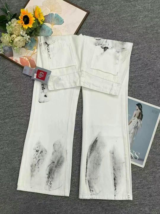 春夏新款复古泼墨设计感高腰水洗扎染阔腿牛仔裤,独立包装带吊牌,码数S--2XL码,80件左右,全清7.8元超低价秒杀!