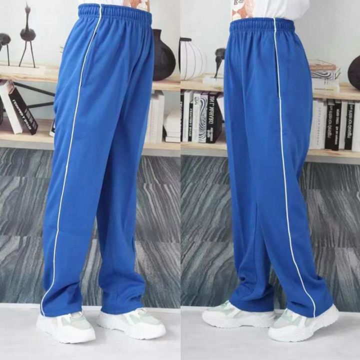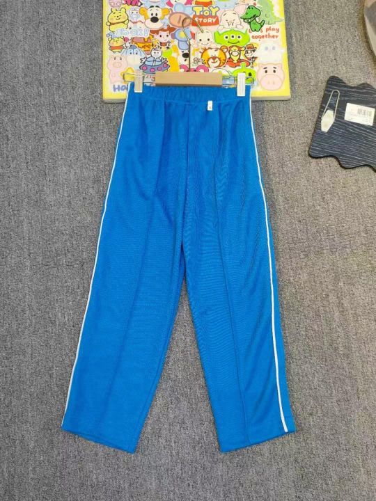 350件春夏季中大童宝蓝色一条白杠宽松休闲运动长裤 单款单色,码数28-30-32-34-36 28码裤长70cm 36码裤长90cm,独立包装。