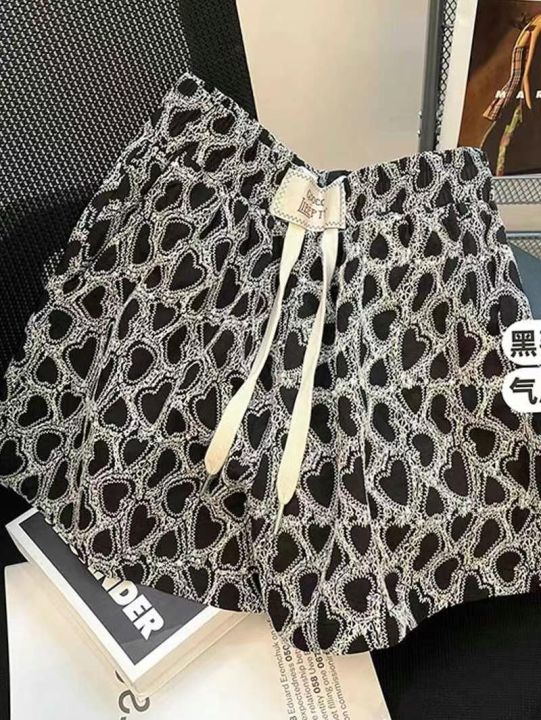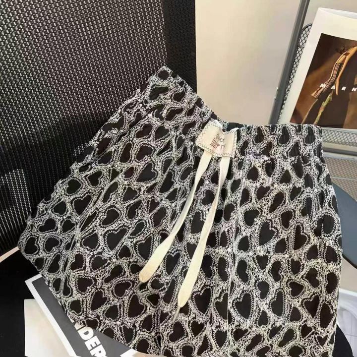 430件左右复古刺绣系带爱心印花潮流百搭松紧腰阔腿裤...