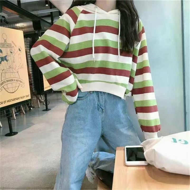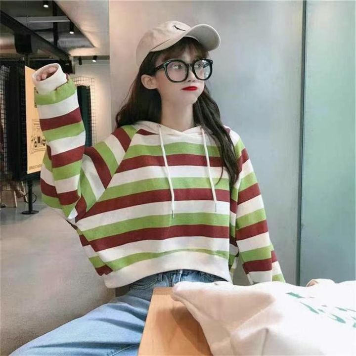 5.8清电商仓回收106件彩虹多巴胺条纹短款连帽卫衣女,...