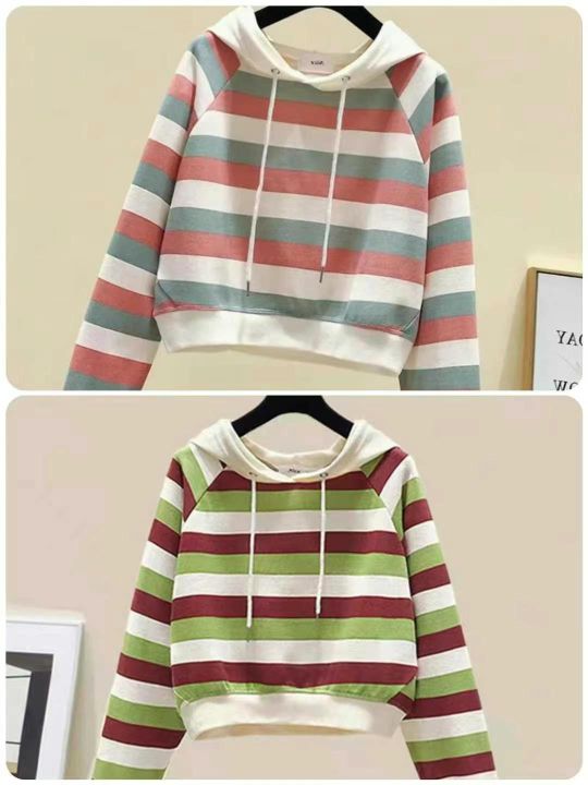电商仓回收106件彩虹多巴胺条纹短款连帽卫衣女,码数S-XL。质量版型非常哇塞,上身舒服好看。全部独立包装。