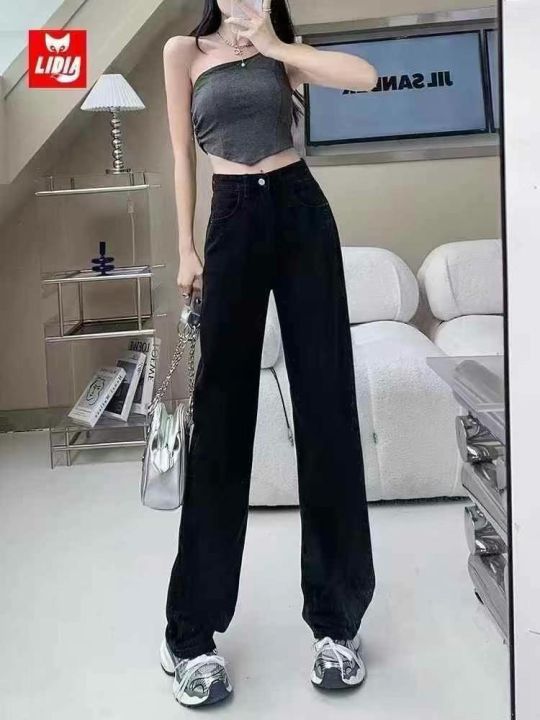 高弹力经典款女士黑色直筒牛仔裤,独立包装带腰牌,码...