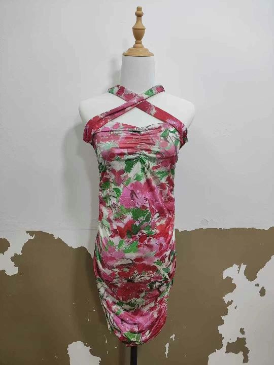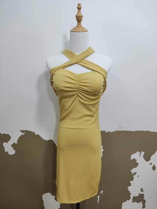 [月亮]:纯欲辣妹抹胸绑带包臀带胸垫连衣裙
