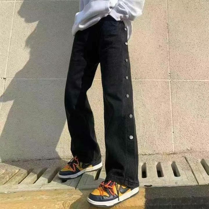 天猫在售470件高品质男女同款潮牌纽扣排扣牛仔阔腿裤,单款单色,S-3XL,全新扣眼未开独立包装带吊牌