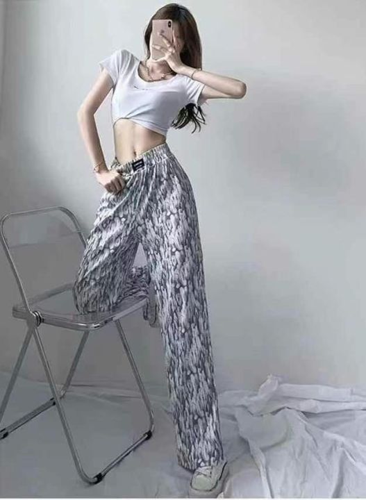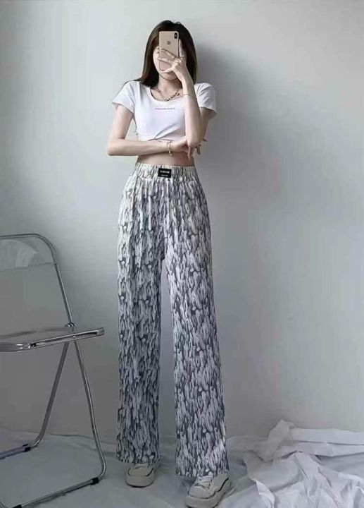 天猫在售款138件左右高品质夏季薄款冰丝螺纹扎染休闲阔腿裤,单款两色,S-2XL,独立包装带吊牌