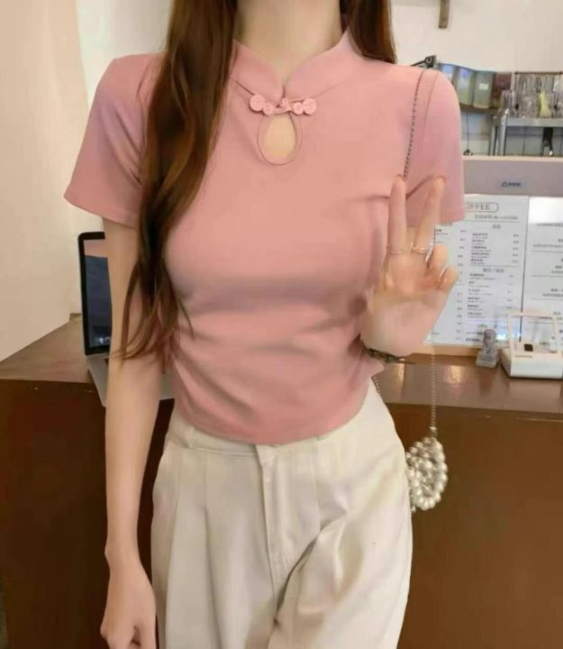 夏季新款新中式国风立领纯色宽松百搭盘扣针织小衫,独...