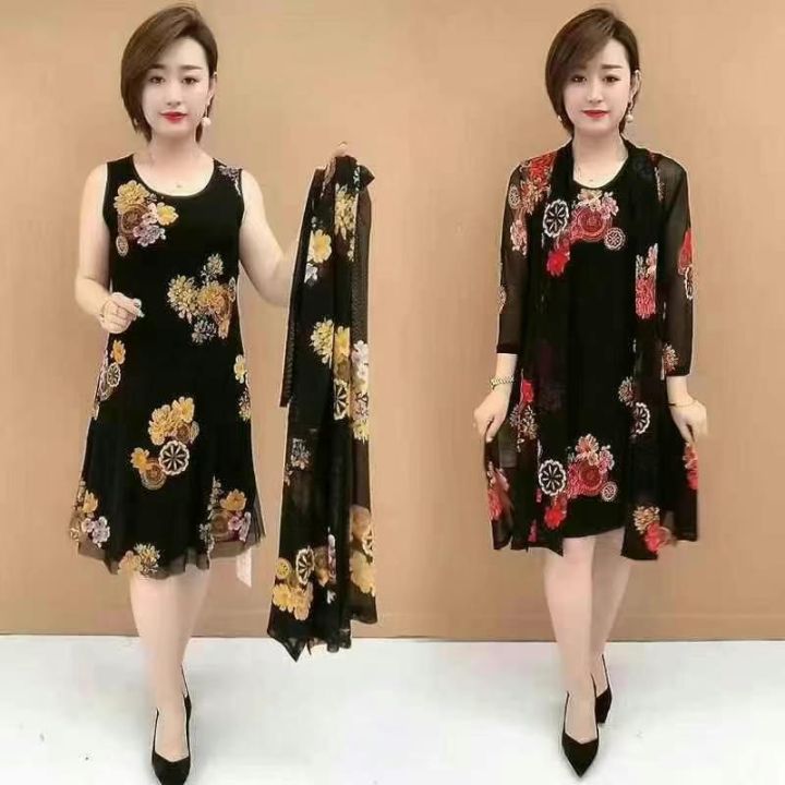 妈妈装两件套中老年女装夏季连衣裙新款阔太太气质减龄单裙子,数量145套,码数M-3XL,独立包装,全清7.8元