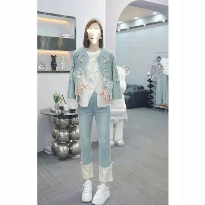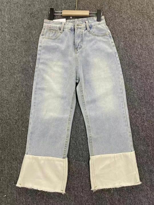 270件左右浅蓝色牛仔裤女2025夏季新款烟管裤拼接高腰显瘦直筒裤子,独立包装,码数S~XL,单款单色,全清8.8元。