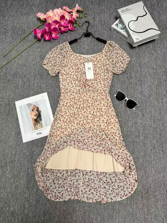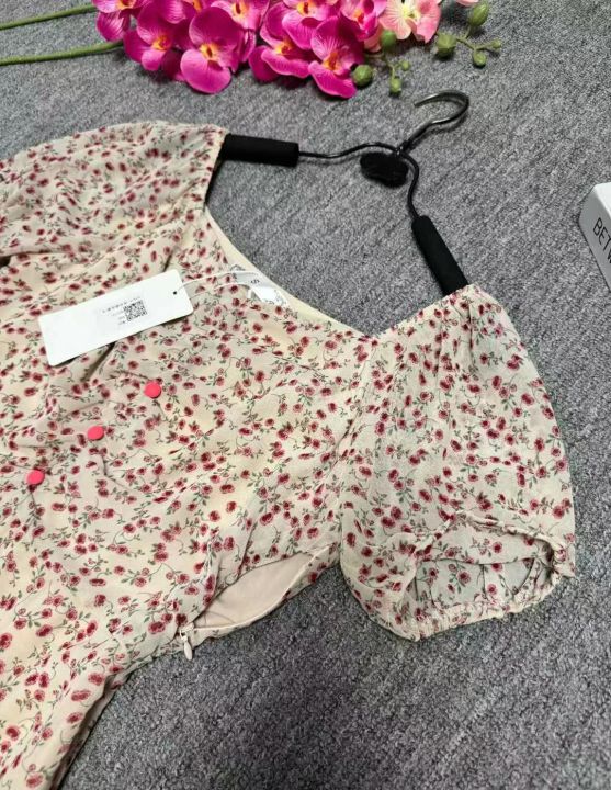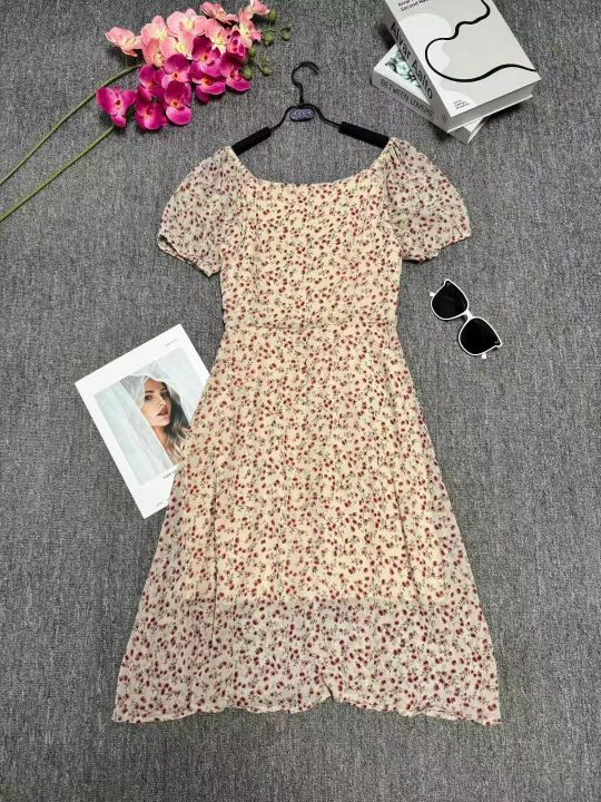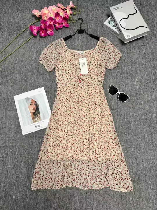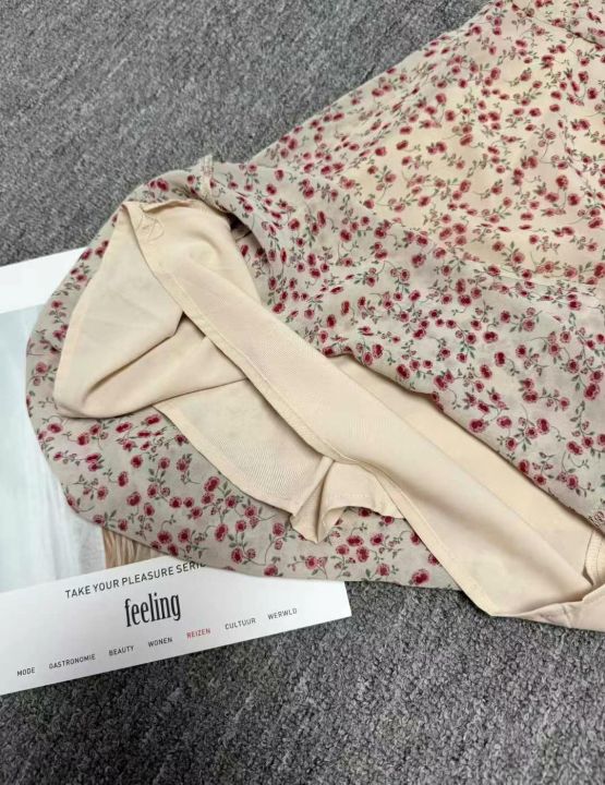 ⭐⭐140件温柔风v领高级感小众泡泡袖A字中长款绝美泡泡袖雪纺碎花连衣裙,码数S到XL码,有内衬,品质好,独立包装带吊牌,全清9.9元!