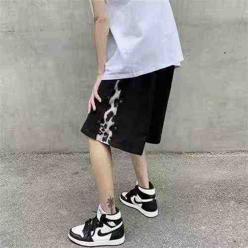 豹纹排扣短裤445件5.9,抽绳松紧腰,有口袋,拼接设计,深灰色多,码数S-2X...