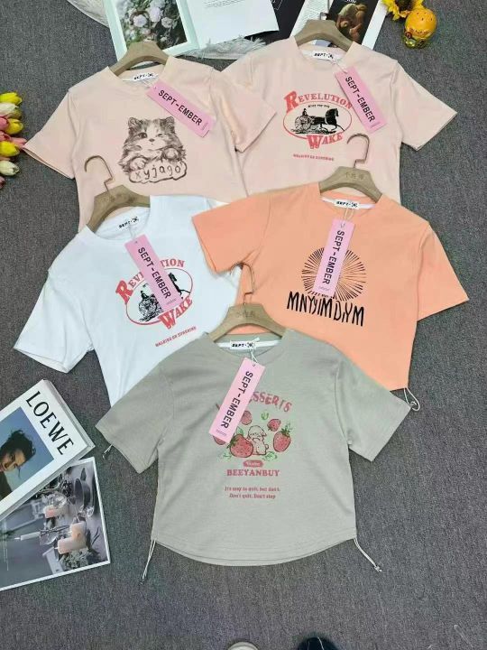 广州十三行档口货3000件夏季网红爆款纯棉辣妹抽绳短t,可穿90-130斤,面料柔软舒适有弹力,质量质感款式都超级好,独立包装带吊牌。分货加一