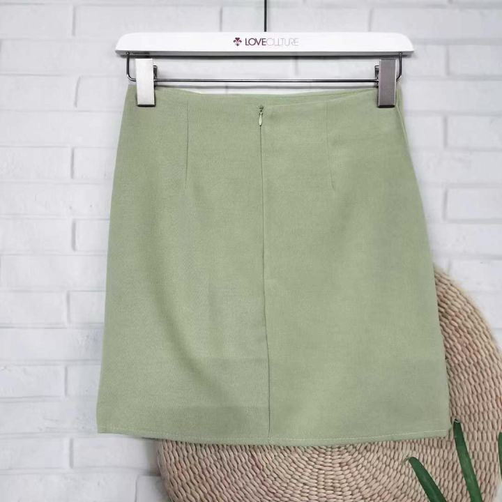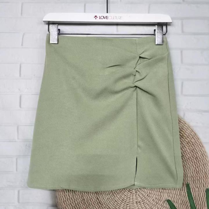 4.8元捡漏[發][發] 绿色扭结设计感开叉短裙女春夏季新款小个子a字高腰半身裙,独立包装吊牌,码数s-xl,数量107件$
