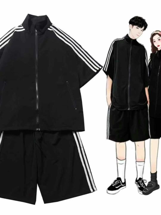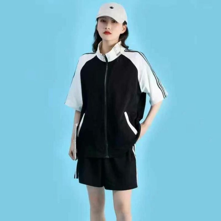 全清13.82025新款夏季休闲运动套装女二开三条杠短袖短...