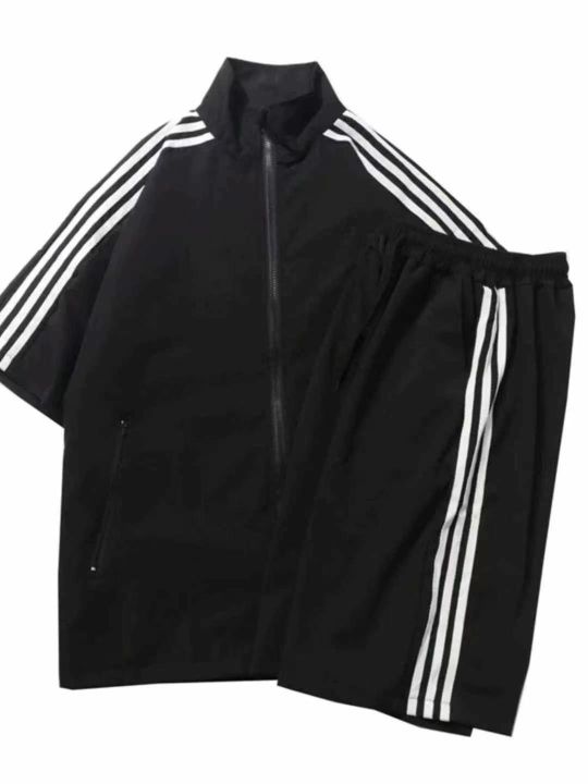 2025新款夏季休闲运动套装女二开三条杠短袖短裤两件套 ,800套,码数:M-2XL,(货号0603#01) ,分货➕1