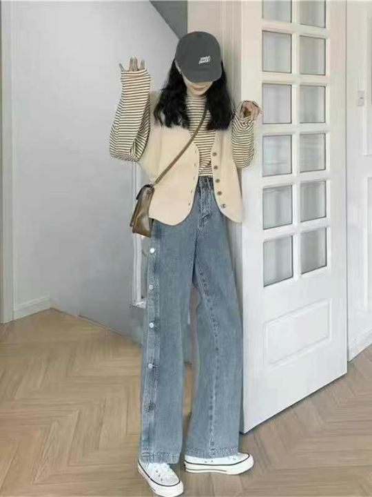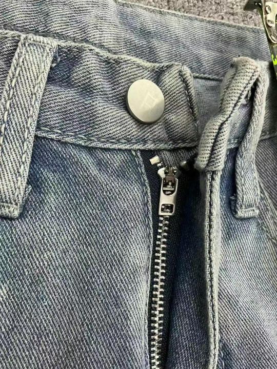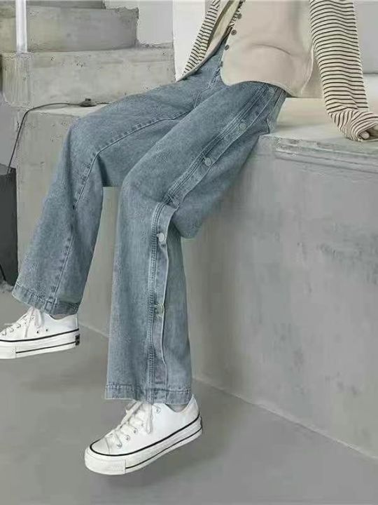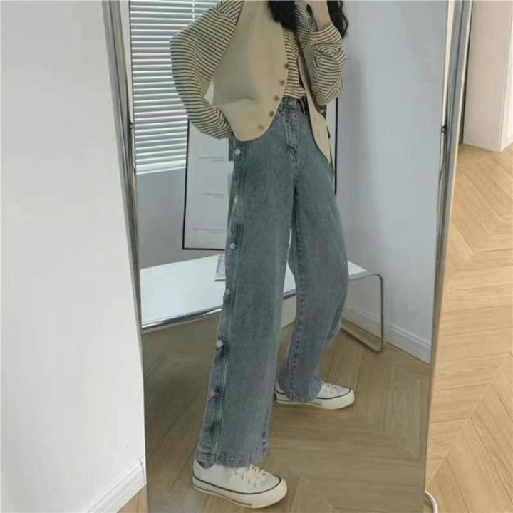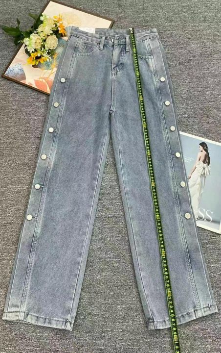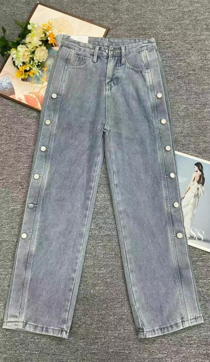 春夏新款洗水棉纽扣设计直筒宽松阔腿牛仔裤,独立包装...
