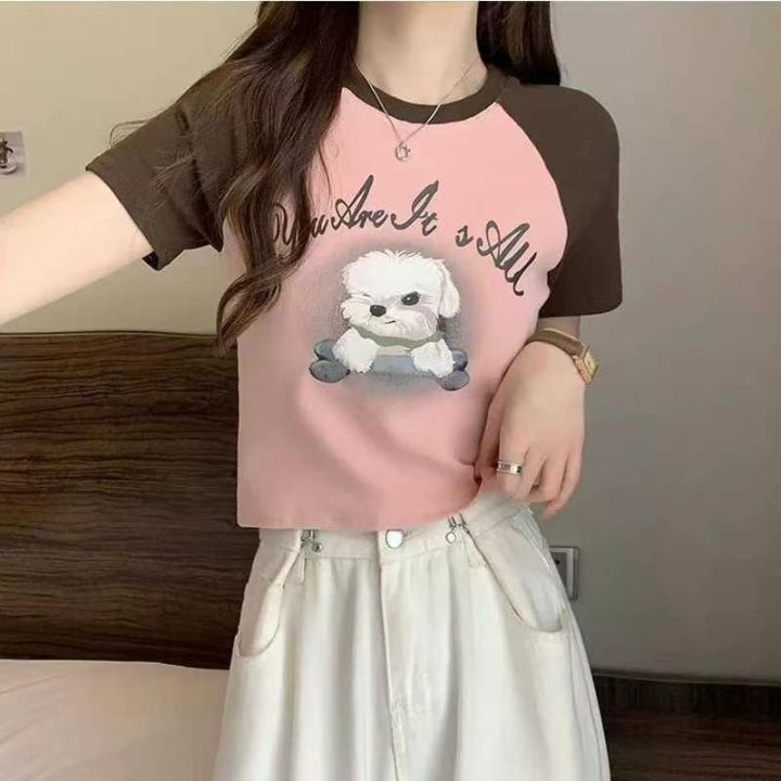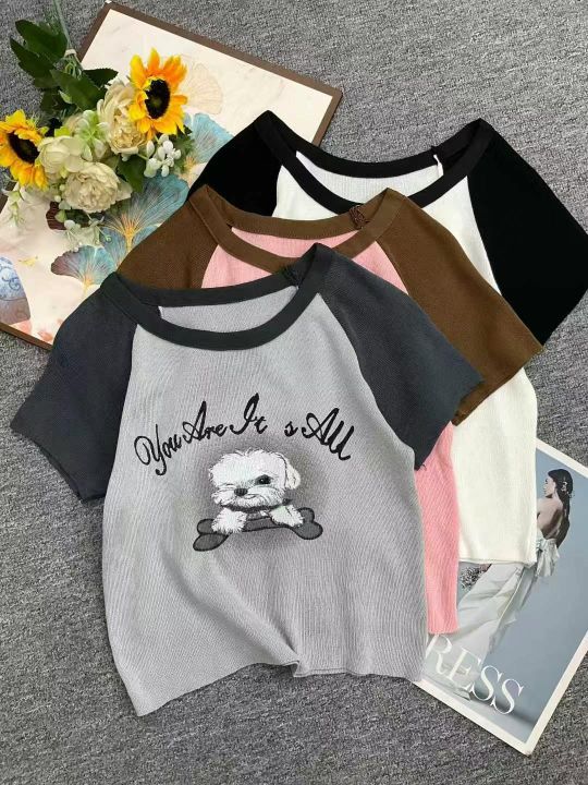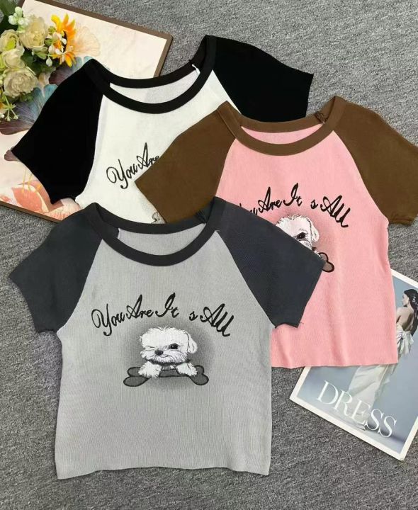 夏季新款美式辣妹复古撞色弹力修身显瘦卡通印花冰丝针织小衫,独立包装,均码面料柔软舒适弹力大,1640件,全清6.9元超低价秒杀!分货加一!