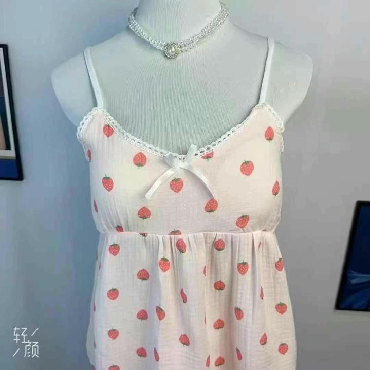 吊带睡衣纯棉带胸垫甜美可爱公主风,纯棉吊带套装,面...