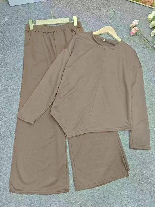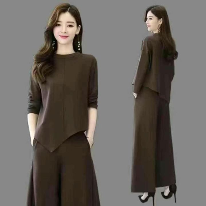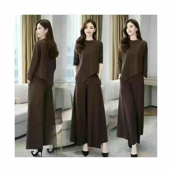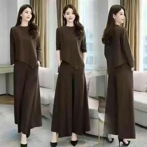 时尚阔腿裤套装女2025春秋季新款洋气减龄大码气质显瘦休闲两件套,独立包装,整款4色,(黑色有200套左右,咖啡色为主,)2-5码,1500套左右,9.8清,分货十1