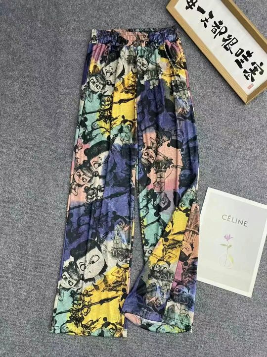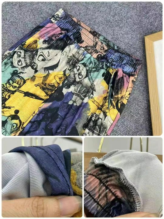 扎染哪吒图印阔腿裤1810件7.9,面料舒适高弹力,松紧...