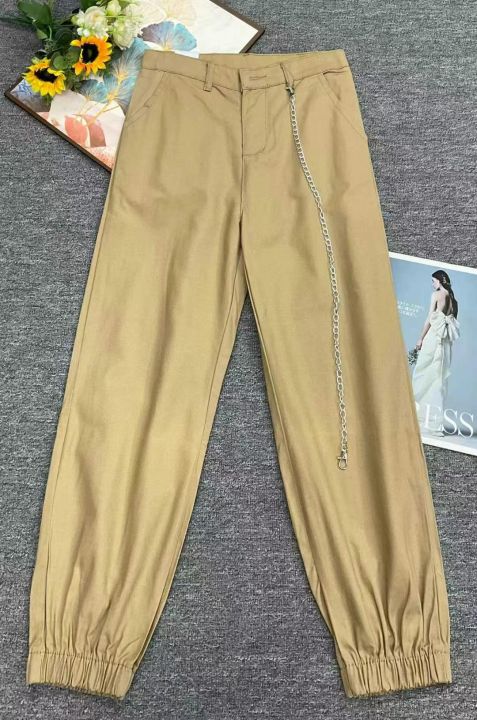 春夏季新款欧美明星同款高腰工装松紧腰束脚休闲裤,独...