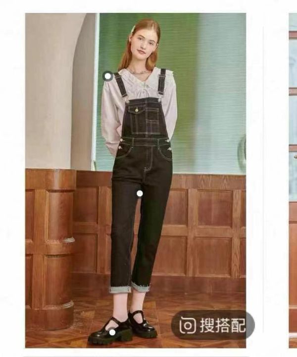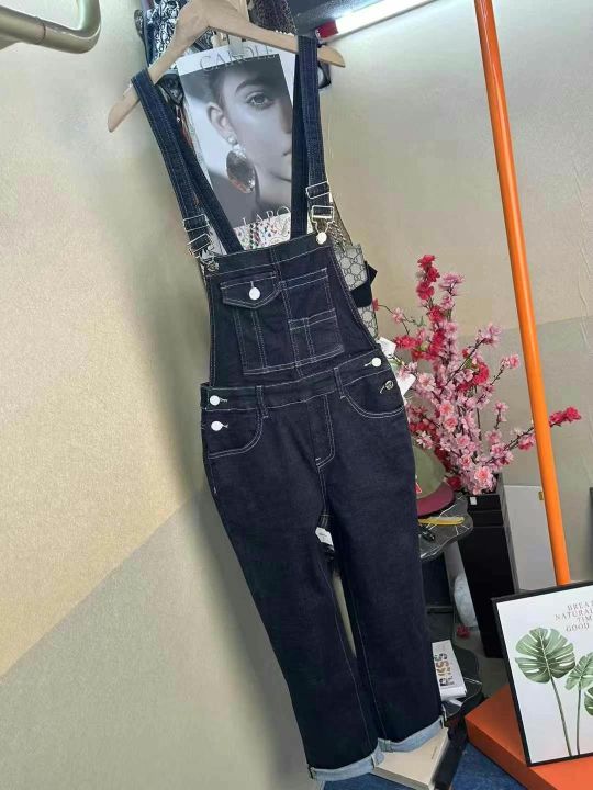 品牌剪标百搭弹力款女士弹力修身背带牛仔裤,数量165...