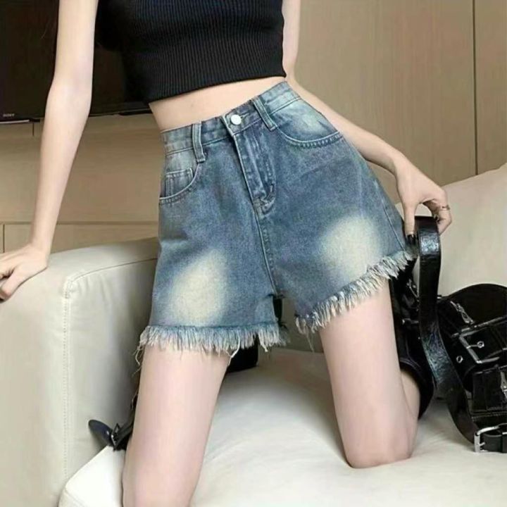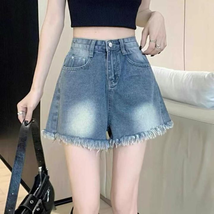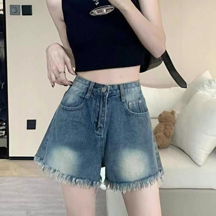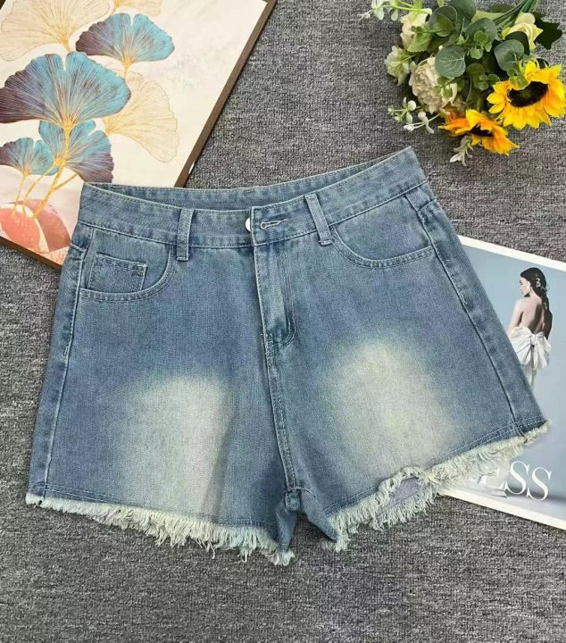夏季新款洗水棉毛边阔腿牛仔短裤,独立包装带腰卡,码...