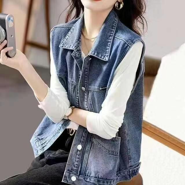 春秋新款洗水棉大码胖MM牛仔马甲开衫,独立包装,码数...