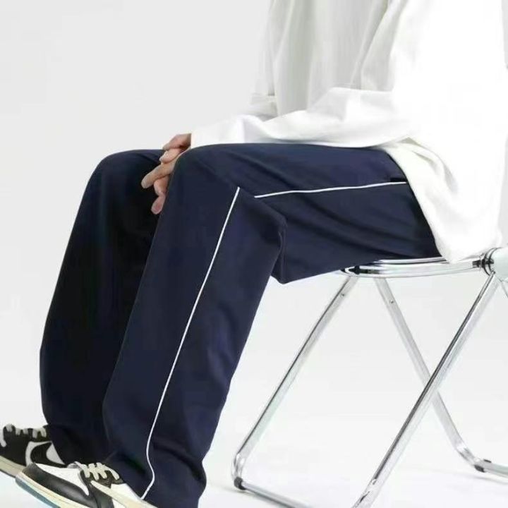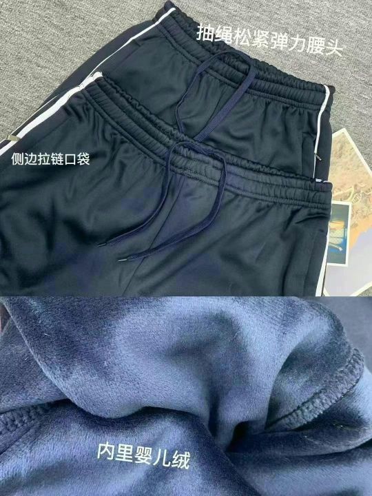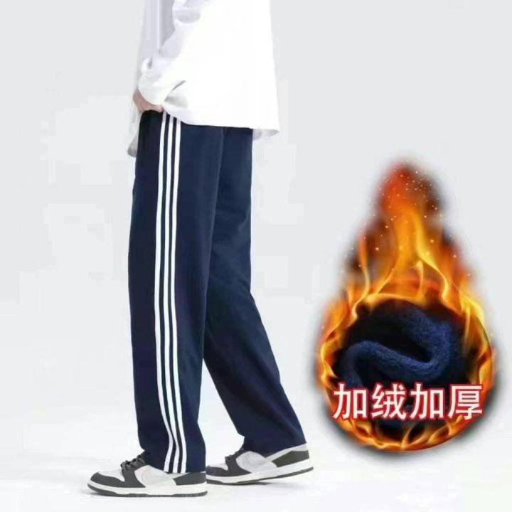5.8清600条秋冬重磅400克加绒(婴儿绒)加厚直筒裤中大童裤子藏蓝宽松直筒休闲运动裤条纹杠裤子 码数140-190 独立包装