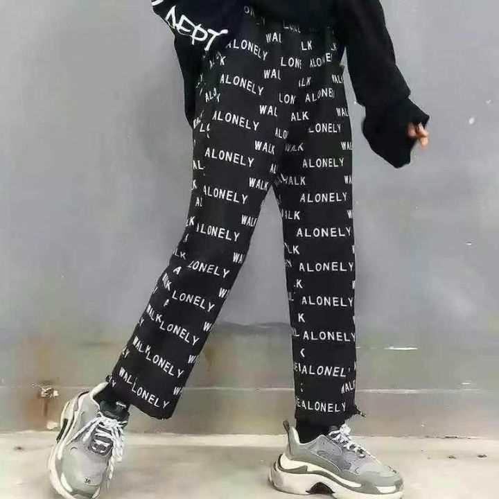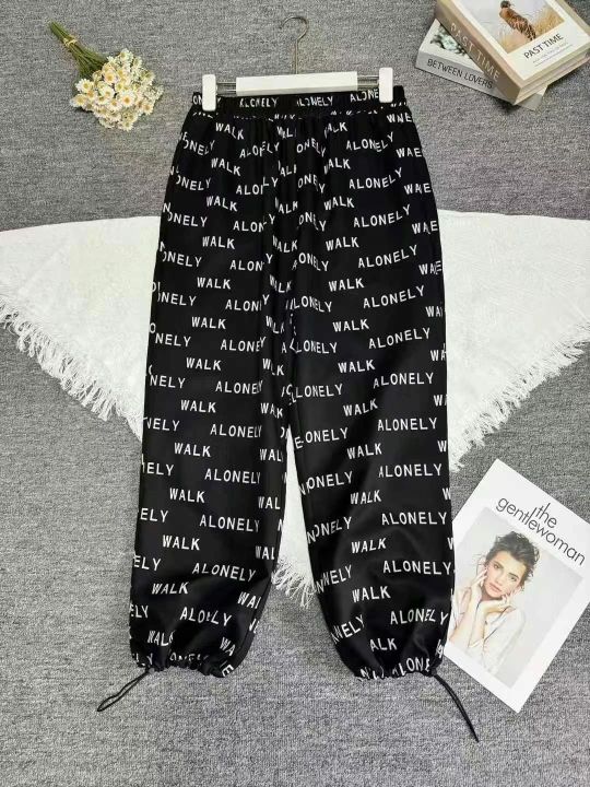 棉质潮流夏季情侣嘻哈字母印花直筒束脚显瘦运动裤,单...
