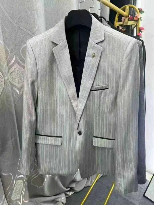 全清19.8 春秋高级感男装大码西装外套,一粒扣条纹商务修身外套,整款三色...