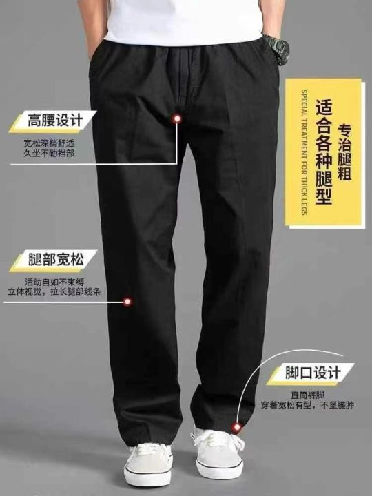 1000件春秋男士高腰深裆纯棉松紧直筒休闲裤。深口袋防...