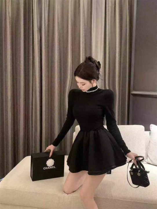 气质半高领连衣裙228件9.9,面料高弹力,拼接设计,收腰A字蓬蓬裙,码数1-4...
