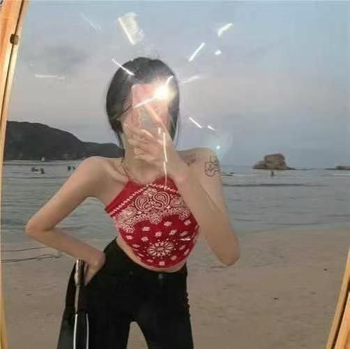 夏季新款性感腰果花挂脖网红辣妹抹胸肚兜,雪纺拼针织...