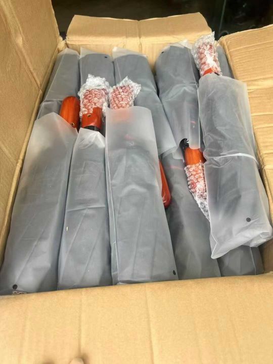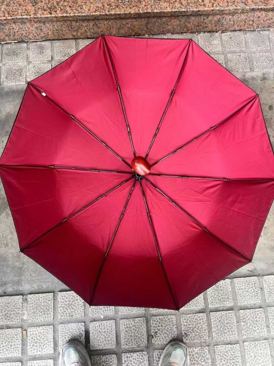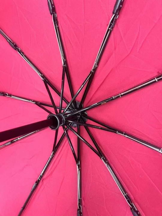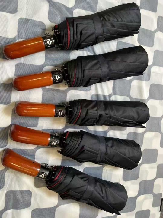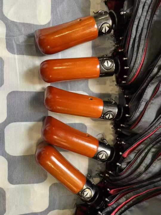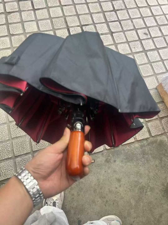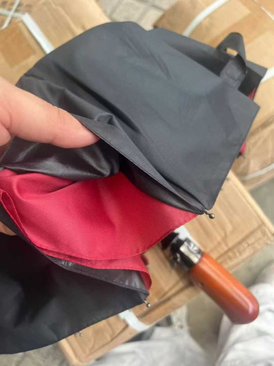 10骨双层布全自动雨伞,600把,木质手柄,外黑内红,...