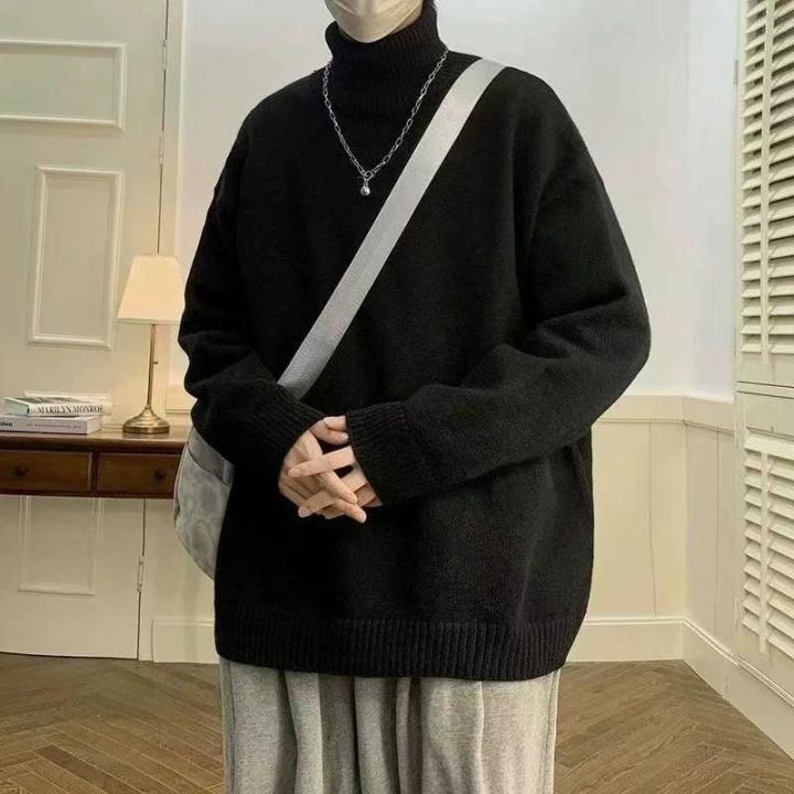 秋冬新款高品质宽松大版慵懒风高领包芯纱套头毛衣,独...