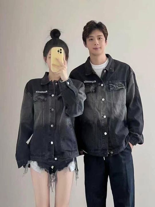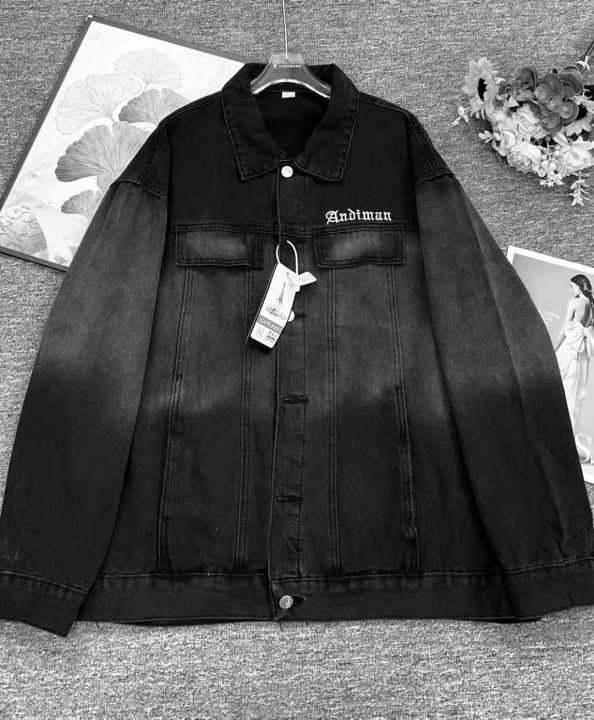 春秋新款男女同款洗水棉工装渐变色牛仔外套,独立包装...